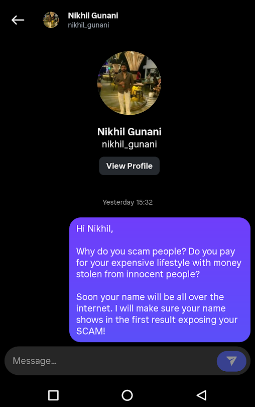 Nikhil Govind Gunani (SCAMMER) निखिल गोविन्द गुनानी